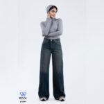 شلوار فول بگ رویال جین رنگ ذغالی قد 110 کد 200096