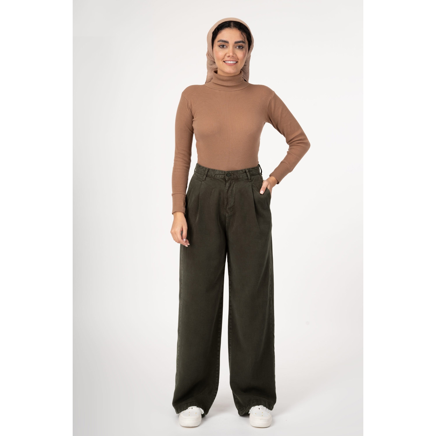 شلوار نیم بگ سیلک رویال جین رنگ سدری تیره کد 200091