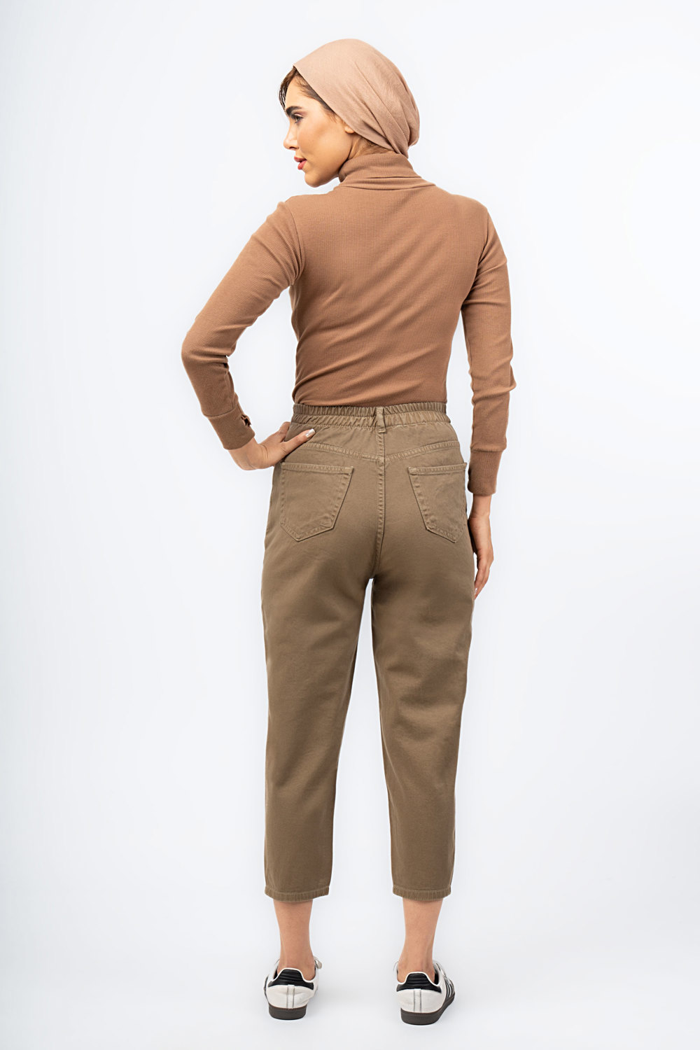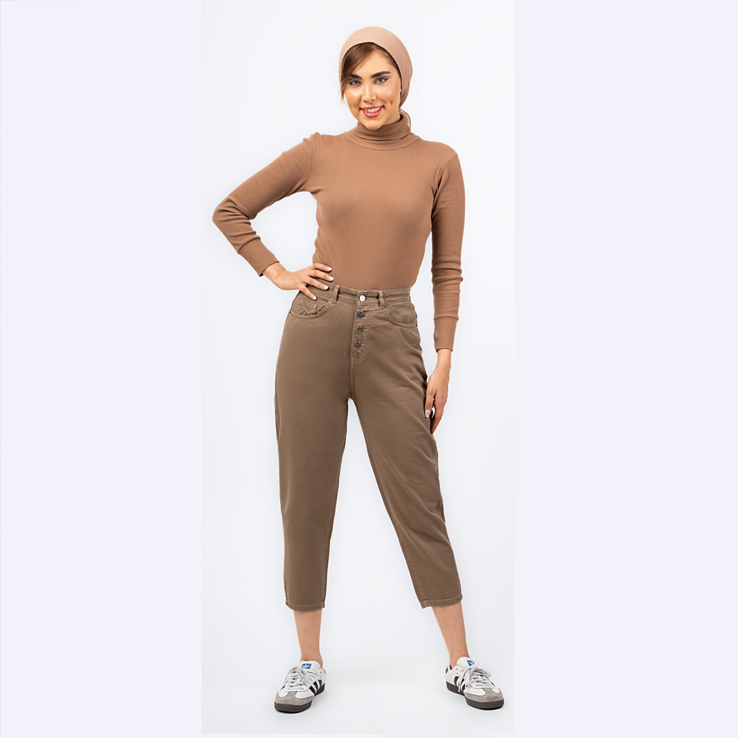 شلوار مام استایل کتان رویال جین گردویی کد 200046