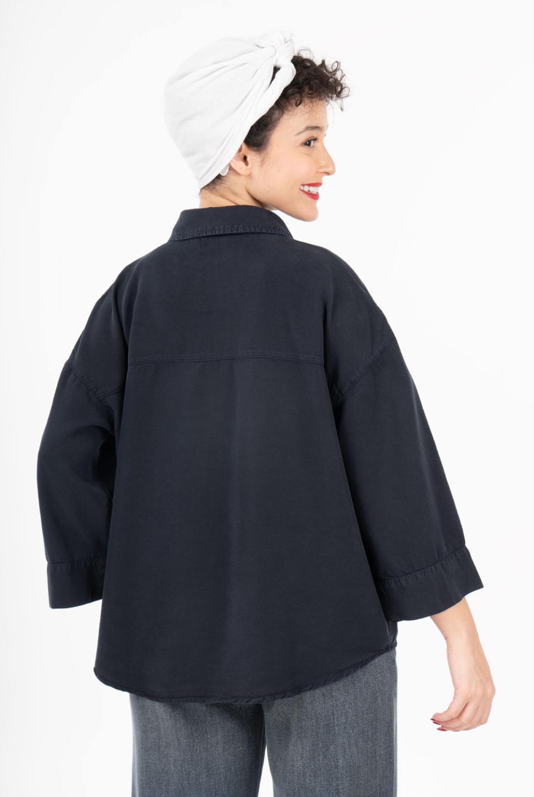 شومیز سیلک کروپین رویال جین رنگ سورمه ای قد60 کد 104106