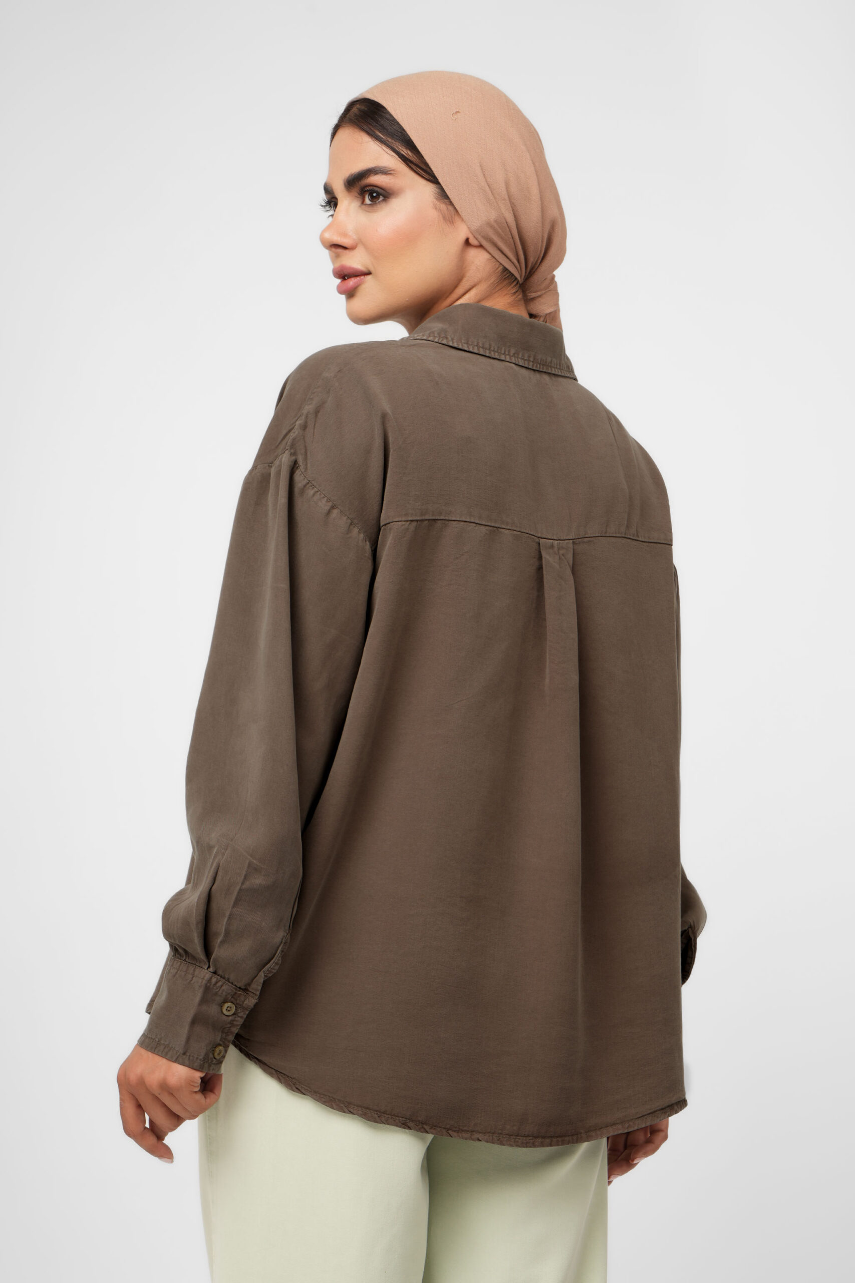 شومیز سیلک رویال جین سبز زیتونی کد 200059